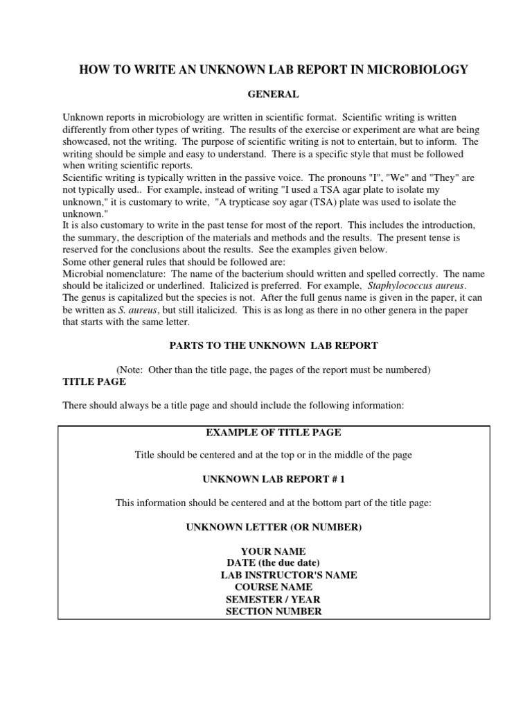Unknown Lab Report Example Microbiology